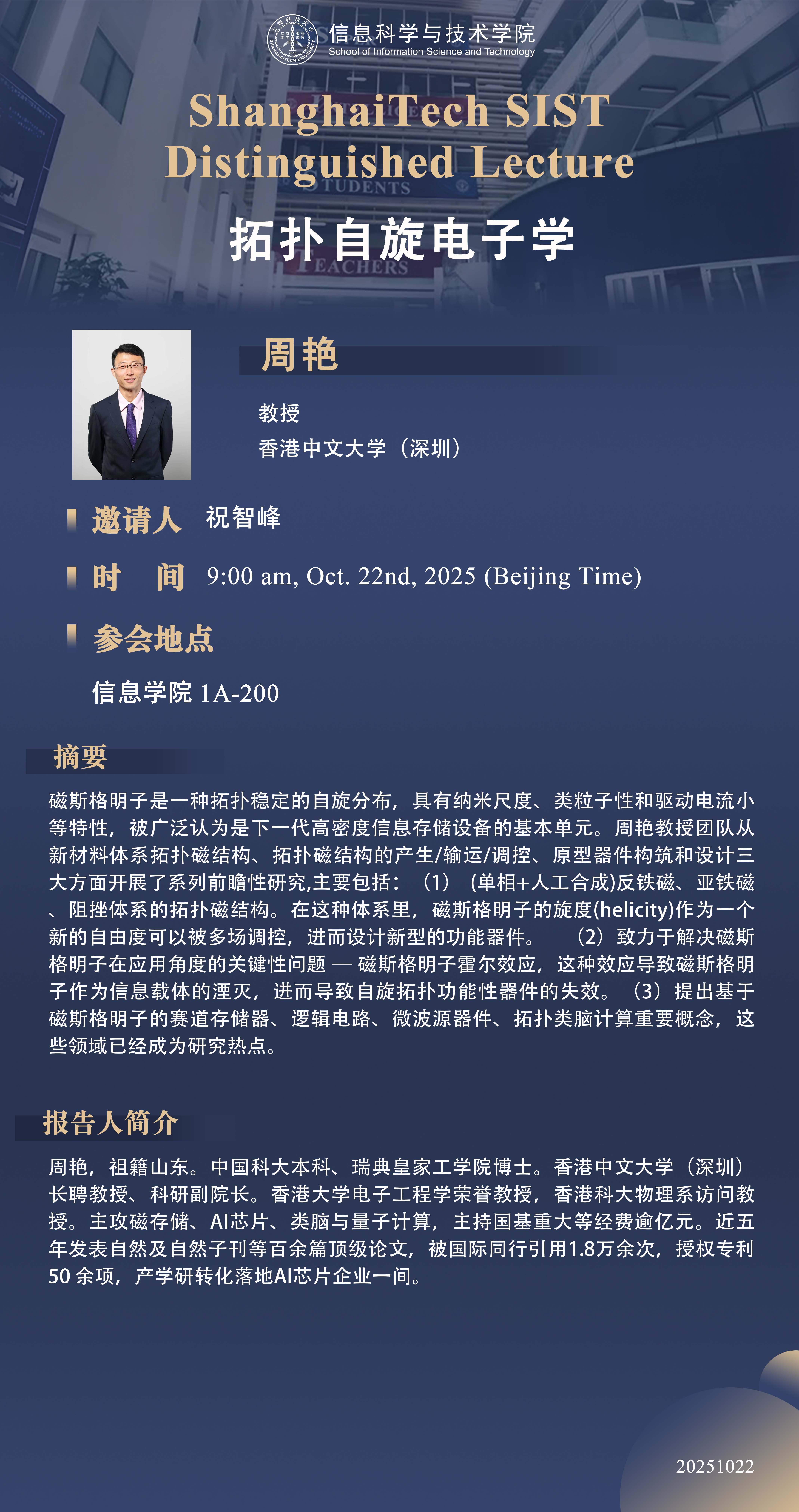 Welcome professor Yan Zhou (周艳) from The Chinese University of Hong Kong, Shenzhen, who shared a lecture on